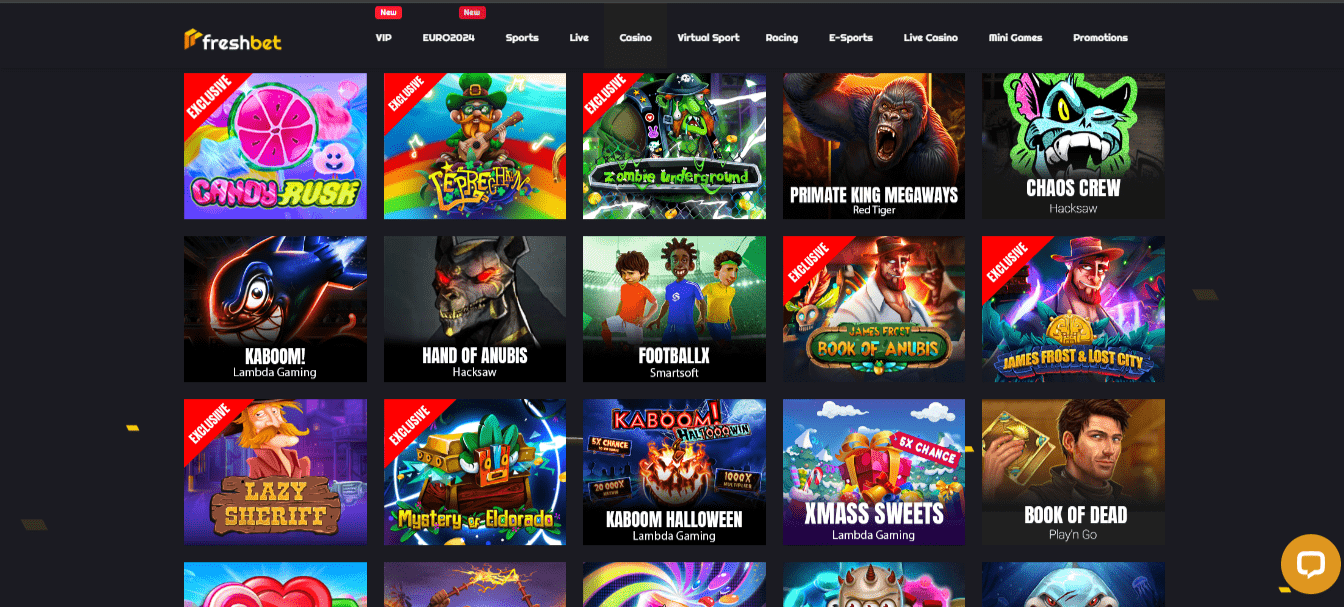 https://fresh-bet.com/enFreshBet on upouusi, täysin kryptokäyttöinen nettikasino, joka lanseerattiin vuonna 2020 ja tarjoaa valtavan valikoiman pelivaihtoehtoja asiakkailleen. Kolikkopelien, useiden pokerin, blackjackin ja ruletin sekä muiden pelien lisäksi se yhdistää valtavan urheiluvedonlyöntiosion ja satoja kertoimia yli 20 lajissa. Laadukas visuaalinen kuva ja jättimäinen, interaktiivinen banneri, joka esittelee monia peliosioita ja tämänhetkisiä tarjouksia, ovat verkkosivuston sulavan modernin suunnittelun ominaisuuksia.