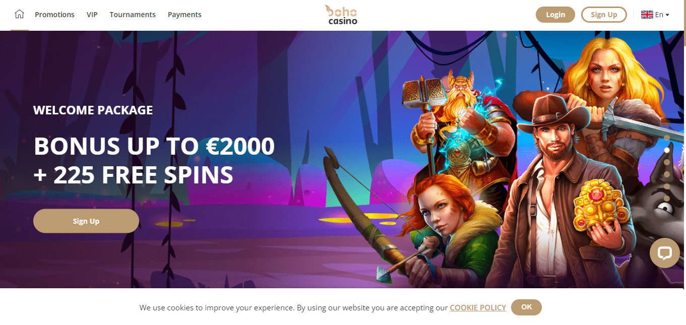 https://www.bohocasino.com/The company Hollycorn NV, which is also known for successful brands like BlueLeo and WildCoins, has now launched Boho, an online casino. The location debuted virtually in early 2021 and provides gamers with a fantastic library of over 4000 games as well as a variety of thrilling promotions that are sure to lift your spirits. The website has a sophisticated layout with vibrant visuals and a sizable interactive banner highlighting the available deals.